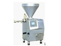 本機是由葉片泵充填、伺服電機驅(qū)動、人機界面、微機控制的全自動真空定量灌裝機,配裝有自動扭結(jié)機構(gòu)。既可以灌制肉糜腸、火腿腸、火腿等腸衣制品;又適用于天然腸衣、膠原蛋白腸衣、纖維腸衣等分份扭結(jié)。也可用于灌裝各種瓶盒裝產(chǎn)品.本機設(shè)有葉片自動補償裝置,分份定量精度可達±2克,傳遞物料輕柔,而且灌裝速度、扭結(jié)速度、扭結(jié)圈數(shù)、每份的重量均可調(diào)整。