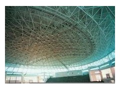 網架是由多根桿件按照一定的網格形式通過節點連結而成的空間結構。具有空間受力、重量輕、剛度大、抗震性能好等優點;可用作體育館、 影劇院、展覽廳、候車廳、體育場看臺雨篷、飛機庫、雙向大柱網架結構距車間等建筑的屋蓋。缺點是匯交于節點上的桿件數量較多,制作安裝較平面結構復雜。